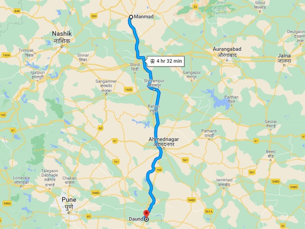 आता एकूण 60 कि.मी. अंतराची चाचणी घेतल्याची माहिती उप मुख्य अभियंता (बांधकाम) दीपक कुमार यांनी दिली. मनमाड ते दौंड रेल्वे मार्गात नगरच्या रेल्वे स्थानकाचा महत्वपूर्ण टप्पा येतो. मात्र, हा मार्ग सिंगल लाईन असल्यामुळे रेल्वेगाडीचा वेग कमी होता.
