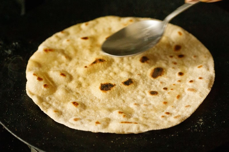 गव्हाच्या चपातीवर 3 ग्रॅम तूप लावल्यास 36 कॅलरीज वाढतात.