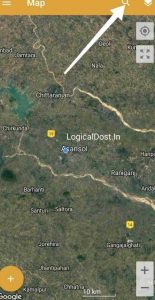 स्टेप – 2 : GPS Fields Area Measure ॲप उघडल्यानंतर तुम्हाला वरील सर्च आयकॉनवर क्लिक करावे लागेल, त्यानंतर तुम्हाला ज्या जागेचे मोजमाप करायचे आहे त्या जागेचे नाव टाइप करून सर्च करावे लागेल.