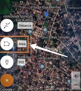 स्टेप – 4 : +आयकॉनवर क्लिक केल्यानंतर, 3 ऑप्शन उघडतील, Distance, Area आणि Poi, त्यापैकी तुम्हाला Area या ऑप्शनवर क्लिक करावे लागेल.