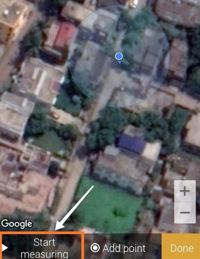 GPS Measuring च्या ऑप्शनवर क्लिक केल्यानंतर तुम्हाला तळाशी असलेल्या Start Measuring च्या ऑप्शनवर क्लिक करावे लागेल. त्यानंतर तुम्हाला जमिनीच्या चारही कोपऱ्यापर्यंत चालावे लागेल.