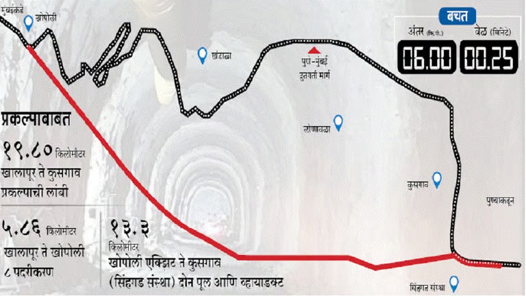 मुंबई-पुणे द्रुतगती मार्गावरील खंडाळा घाटातील वाहतूक सुरळीत करण्यासाठी दोन बोगद्यांचे 95% टक्के काम पूर्ण झाले आहे. 23 मीटर रुंदीचे दोन्ही बोगदे केवळ भारतातीलच नव्हे तर जगातील सर्वात मोठे बोगदे असून त्यात 4 लेन आहे.