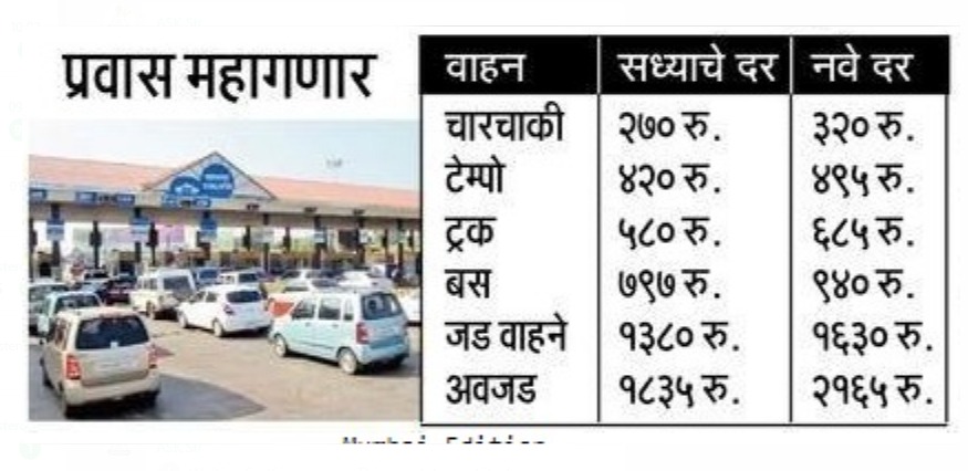 सध्याचे आणि वाढलेले टोल दर जाणून घ्या..