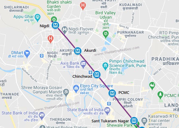 पुणे मेट्रो प्रकल्पाअंतर्गत पहिल्या टण्यात पिंपरी ते स्वारगेट हा मार्ग सुरू आहे. त्यापैकी पिंपरी – चिंचवड महापालिका ते फुगेवाडी आणि आता पिंपरी – चिंचवड महापालिका ते जिल्हा न्यायालय असा 13.9 किलोमीटरचा मेट्रो मार्ग सुरू झाला. या मार्गारून मेट्रोतून नागरिकांना प्रवास करता येत आहे.