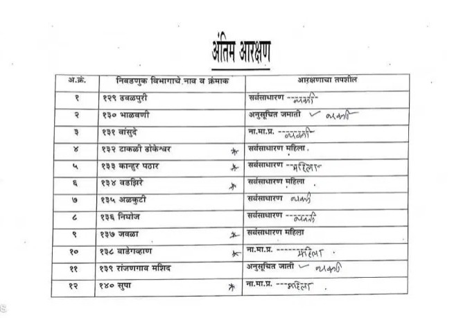 10. धामणगाव आवारी :- अनुसूचीत जमाती महीला (ST),