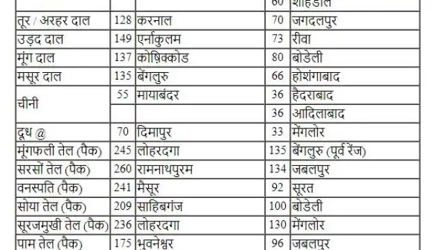 डाळींबद्दल बोलायचे झाले तर तूर डाळ 128 रुपये किलोने विकली जात आहे. 4 मार्च रोजी कर्नालच्या किरकोळ बाजारात तूर डाळ 128 रुपये प्रति किलो होती, उडीद डाळ रेवामध्ये 73 रुपये किलो तर एर्नाकुलममध्ये 149 रुपये किलोने विकली जात होती. मूग डाळ बोडेलीमध्ये 80 रुपये, कोझिकोडमध्ये 137 रुपये, तर सर्वात स्वस्त मसूर डाळ होशंगाबादमध्ये 66 रुपये आणि बंगळुरूमध्ये सर्वात महाग 135 रुपये आहे.